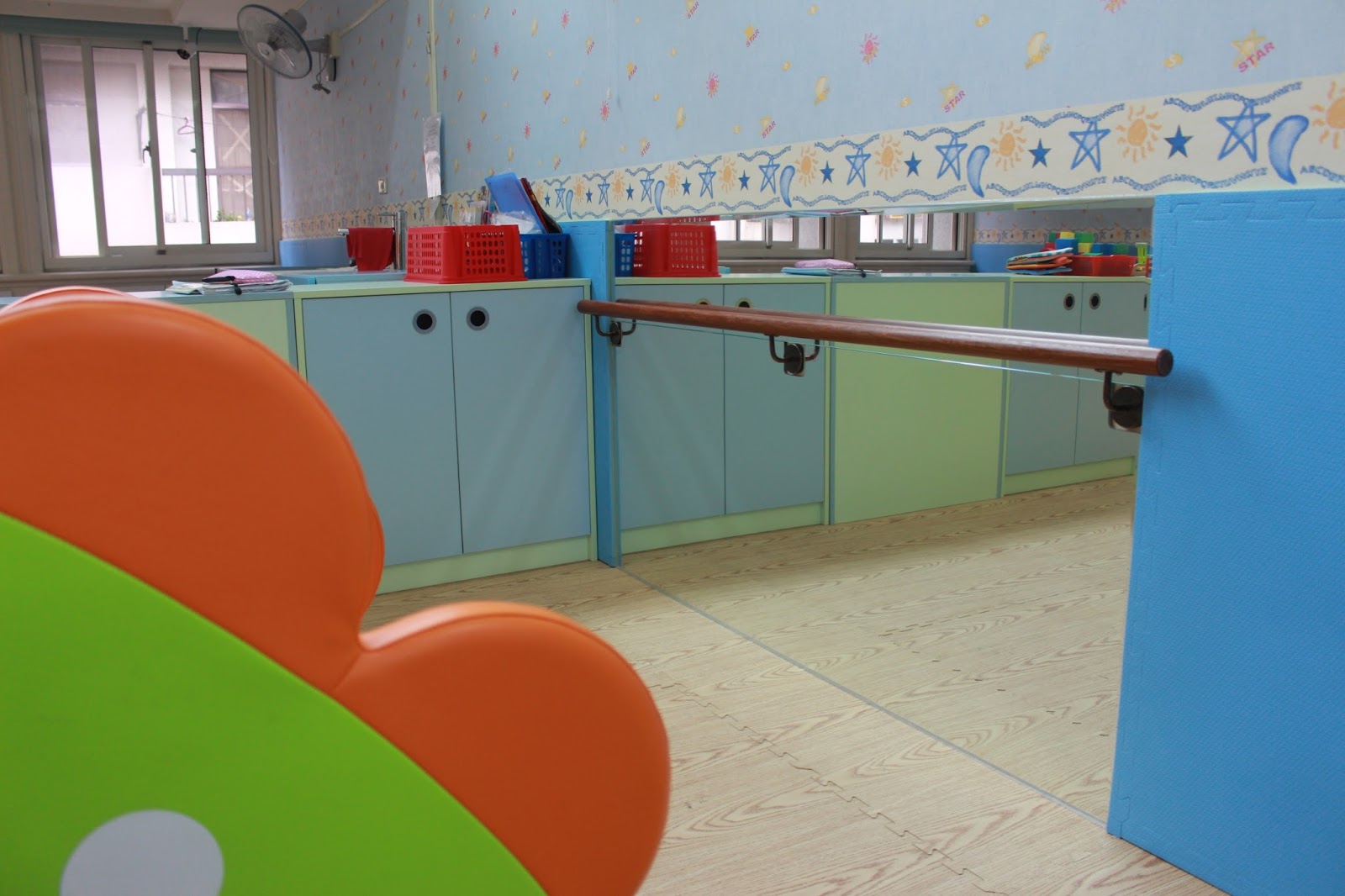 我們上了三樓看到托育中心的環境,沒想到環境還滿大的,寬敞的環境可以讓我們家Antoon好好地爬來爬去,我已經可以想像我們家Antoon到處爬來爬去的畫面! 我看到滿有意思的一件事,通常我們都會設計欄杆給小孩子學站,但他們的欄杆相對較高,從事幼教的都知道,太早學走路對孩子的發育跟發展沒有比較好,讓我看到他們的用心之處