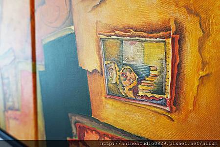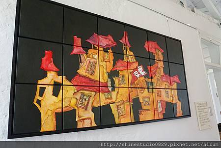 我很喜歡白房子牆上的畫作 , 是一位法籍旅台的藝術家的作品