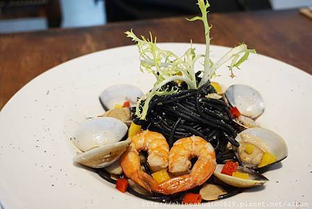 更增添墨魚麵的鮮美 , 麵是屬於Q彈的風味 , 拿得宜的火侯吃起來更香 !
