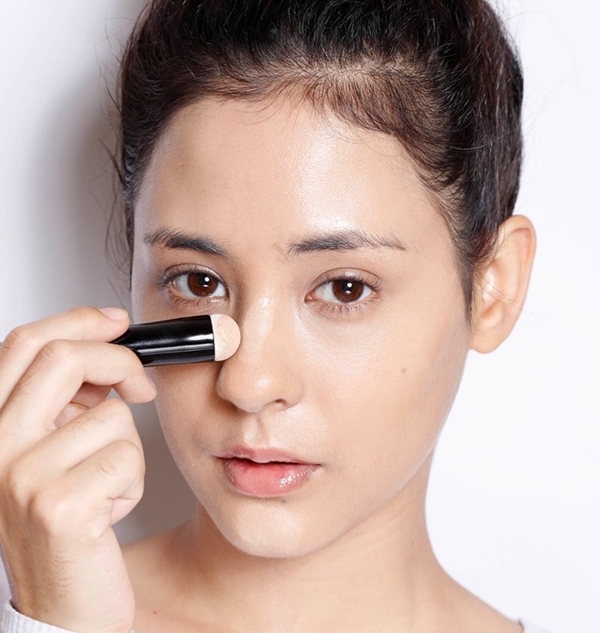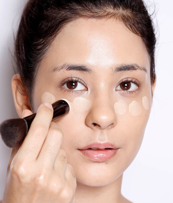 接下來可使用刷具的另一端刷毛,從臉部中央延展開來,像是在為肌膚做拋光,讓底妝更服貼。