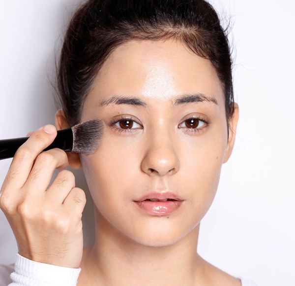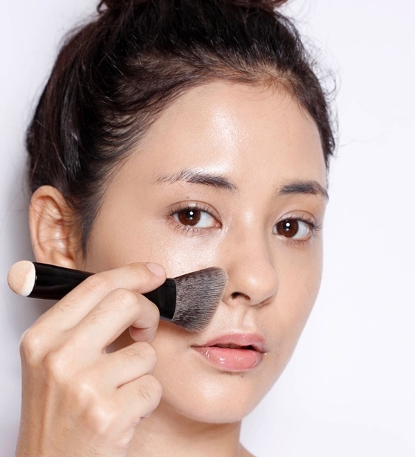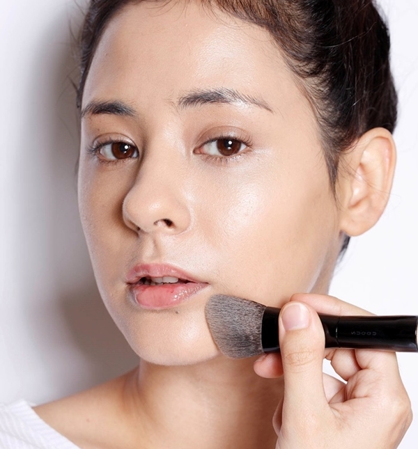最後,要加強全臉粉底的服貼感,可以再使用刷毛端輕刷全臉,做最後的拋光動作就完成了。