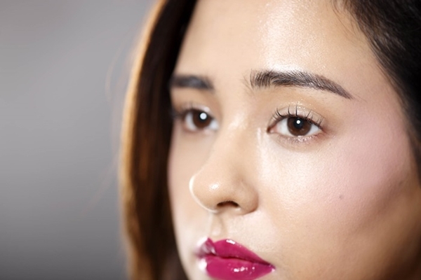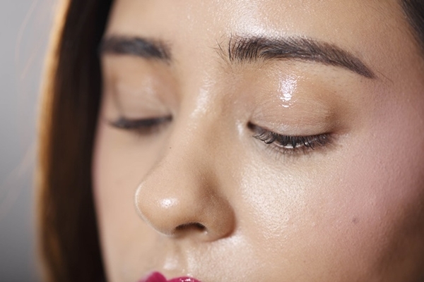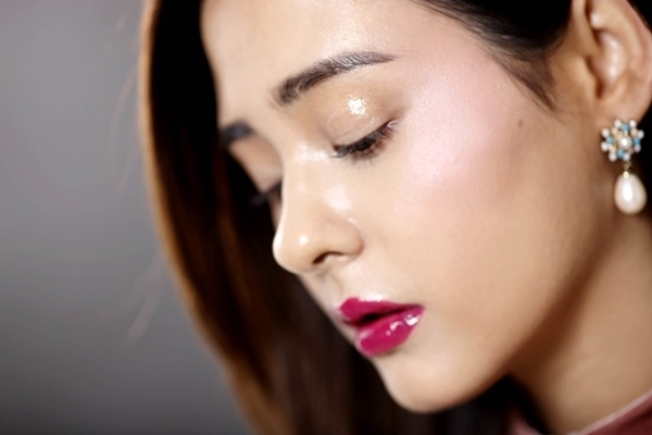 雖然頰彩是使用粉霧感,但為了要讓臉部更加立體且肌膚質感更具有光澤度,會使用打亮技巧來提升整體妝容的質感。