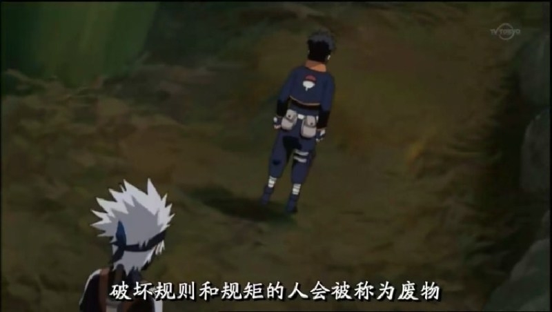 在漫畫第二集,卡卡西站在英雄的慰靈碑前,對鳴人三人說了他第一個教導他們的道理:「在忍者的世界裡,破壞規則的人是廢物。但是呢,不珍視同伴的人,比廢物都不如。」