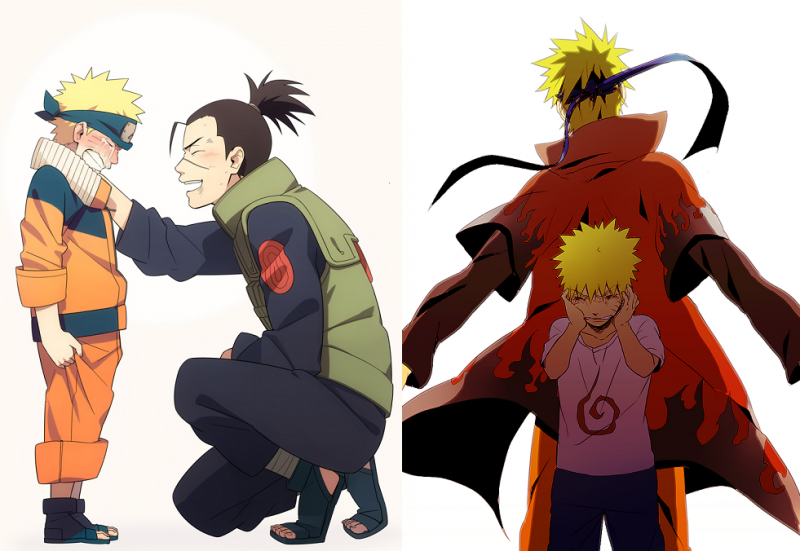 當時的鳴人還是那個不被大家喜愛的吊車尾,失去雙親的他總是坐在離人群不遠處的一張鞦韆上,孤零零卻羨慕的看著人群、想試著尋找朋友。那時大家都因為畢業考試合格而開心,且家人也一同慶祝著。只有鳴人,他考試不及格,也沒有來接他的家人。