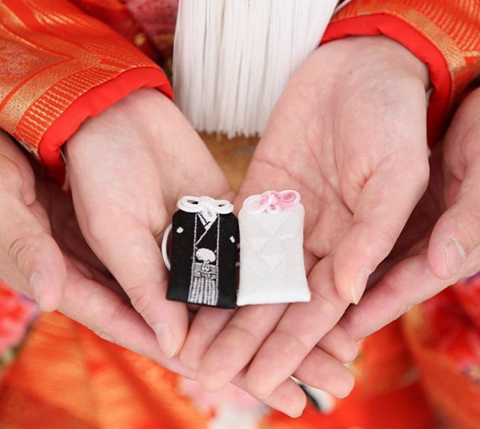乃木神社的御守"永結同心御守"是,新郎的紋服與新娘的白無垢(皆為日本傳統婚禮服裝),這樣的設計非常可愛也是它超人氣的原因之一。