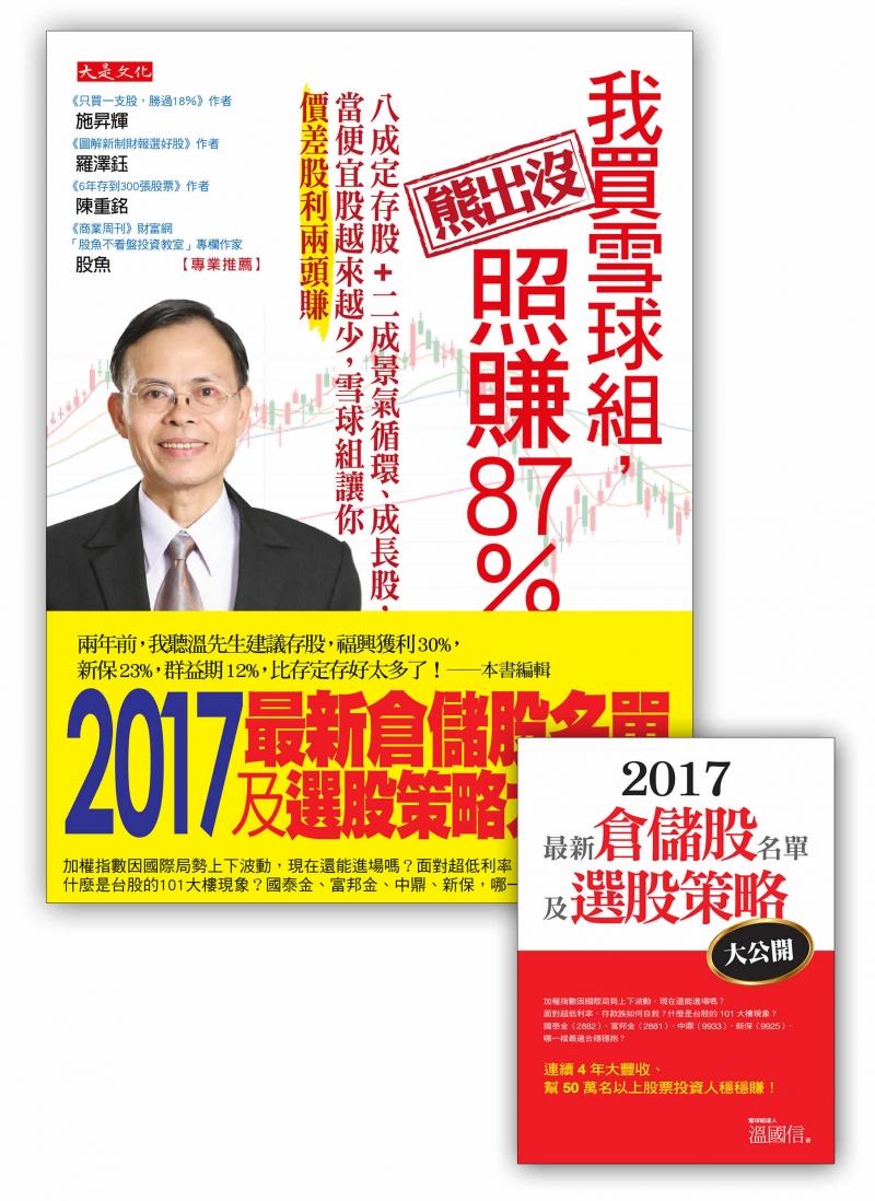 本文摘自大是文化《我買雪球組,熊出沒照賺87% 特別加贈版:2017年最新倉儲股名單及選股策略大公開》