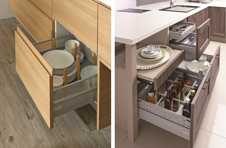 好幫手2:尺寸靈活的各式籃類五金搞定碗盤收納