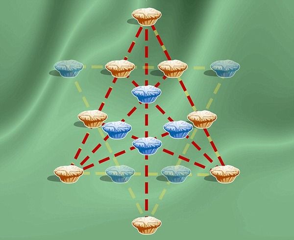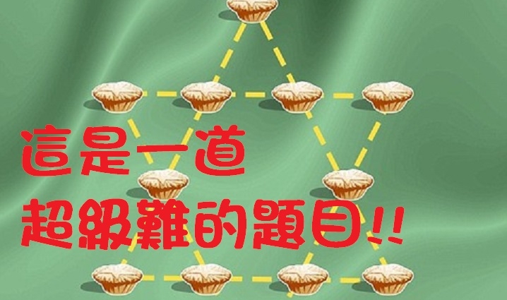 這是1896年誕生的數學邏輯題目,至今已經120年了,還是屬於超激難的類型!如圖,這裡有12盤派,共有6條線、每條線上4盤派,剛好串成一個六芒星。
