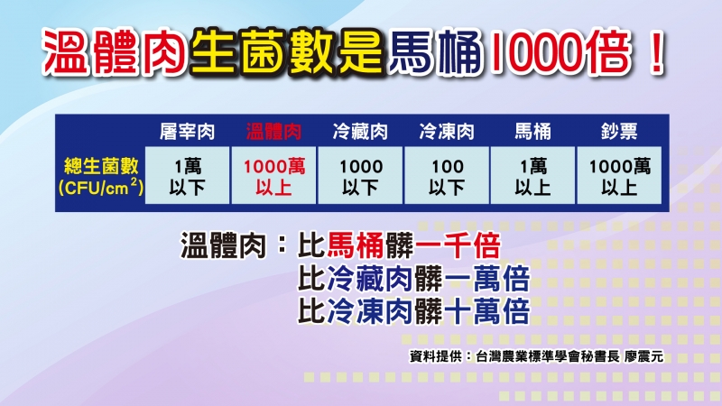 很多人認為現宰的溫體肉比冷凍冷藏肉新鮮衛生,但事實上,現宰的溫體肉細菌爆表。