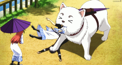 而在動畫《銀魂》裡頭,最讓人覺得可愛的其實不是定春與神樂的互動,是定春和阿銀的互動XDD定春擁有可愛的外表,但見人就舔(咬),只有神樂才抵擋得了它的撒嬌(攻擊)。每當銀時說要扔掉它時,就會狠狠地給他一口,把他咬得頭破血流……