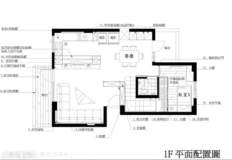 主要建材:奧羅拉大理石、木地板、壁紙、線板
