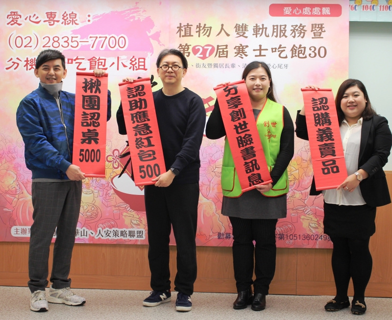 加入公益行列,你可以選擇轉發創世粉絲團公益訊息、揪團認桌、捐助應急紅包、購買義賣品等,愛心專線:(02)2835-7700分機 9 吃飽小組,劃撥帳號:12238589,戶名:創世基金會,備註:吃飽小組。欲知詳情:https://goo.gl/QqzObw