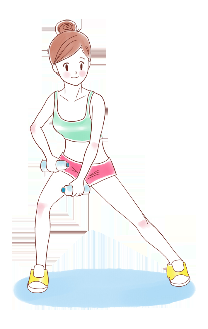 挺立站直,兩腿分開與肩同寬,腳尖略朝外,雙手緊握啞鈴,兩臂伸直放在體側,慢慢下蹲並抬高身體兩側的雙臂直到接近肩膀的高度。