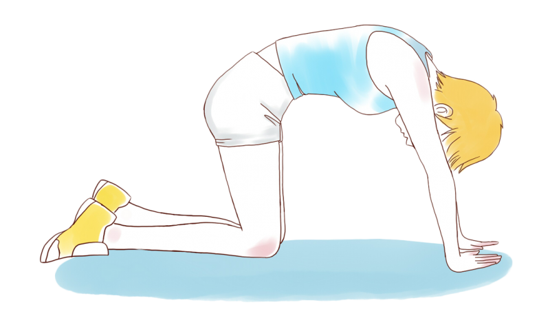 雙膝跪在床上,雙手作支撐,像貓兒拱起脊樑樣用力拱腰,再放下高翹的屁股。反復15次。可鍛鍊腰背、四肢的肌肉和關節,促進全身氣血流暢。