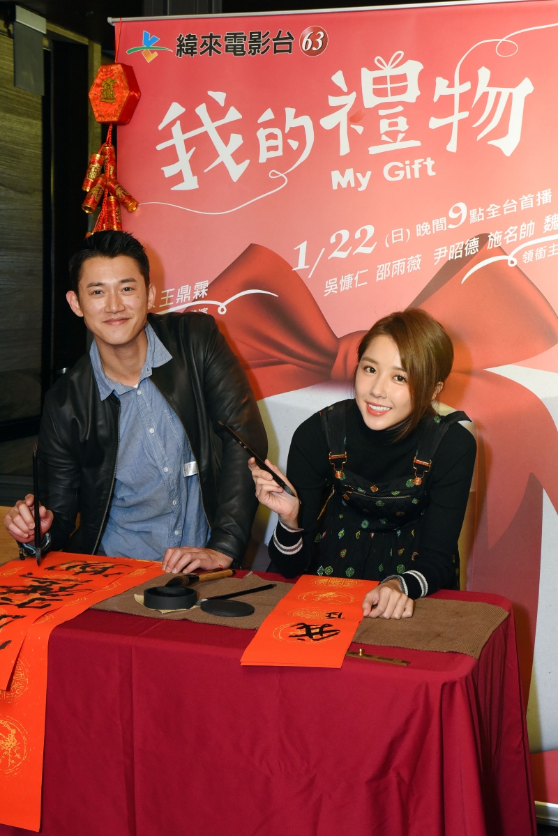 金鐘影帝吳慷仁與邵雨薇特地於過年前聯手揮毫迎新春,自嘲20多年沒拿毛筆的吳慷仁寫起「金G報喜」架式十足。首度在『我的禮物』嘗試自彈自唱的吳慷仁笑說:「其實我唱得爛透了!」;但他苦練歌聲的成果仍讓自己以及導演王鼎霖感動落淚;