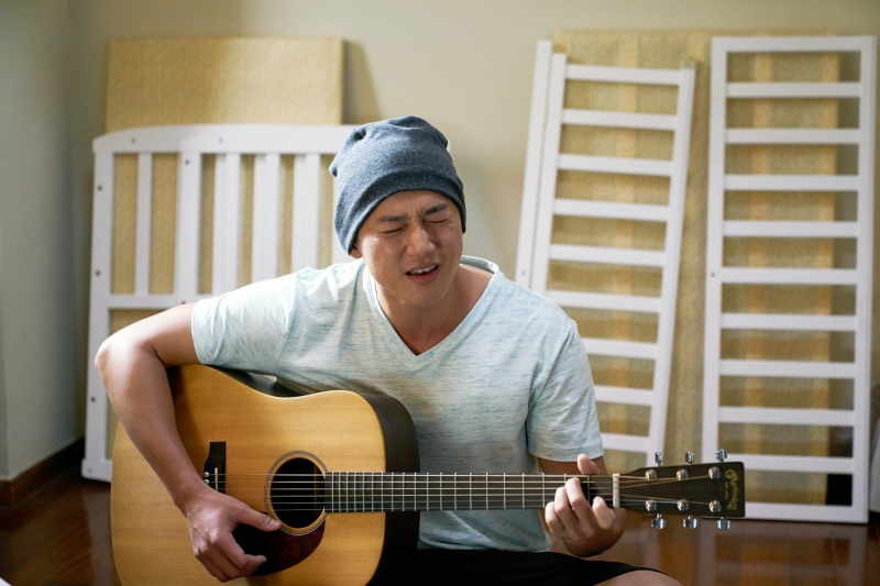 吳慷仁在『我的禮物』有不少突破,其中自彈自唱的處女秀,讓他自嘲:「其實我的歌喉不怎麼樣,去KTV我也都是吃牛肉麵的份,且我覺得自己唱得爛透了,覺得對不起大家。」;但為了這場自彈自唱,吳慷仁特地上課學吉他苦練,拍攝當下不假他人之手,親自上陣完成。導演王鼎霖還透露:「其實正式開拍這場戲時,現場只有吉他老師、我、慷仁跟收音師,慷仁還被自己的歌聲感動到哽咽落淚,連我都忍不住紅了眼框」。