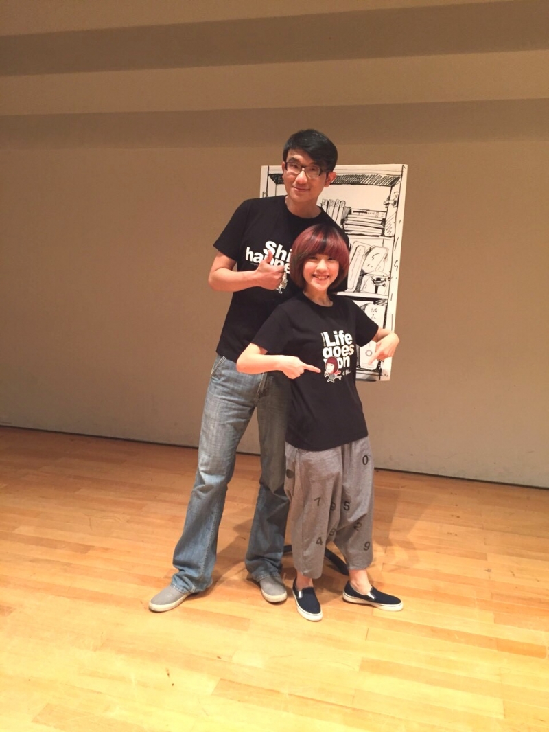 身材嬌小可愛的小球一見到馬克本人就忍不住驚呼:「你好高喔~」她笑說:「在網路上看到馬克老師畫的是頭大、身體短小的娃兒,非常可愛,但很難想像到老師本人是一個個子那麼高的人。」站在身高190公分的馬克身邊,小球顯得相當小鳥依人,兩人將近35公分的身高差也讓在旁的工作人員笑稱:「這應該就是大家說的最萌身高差吧!」