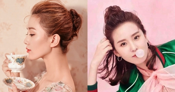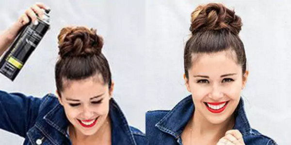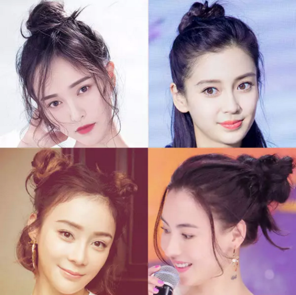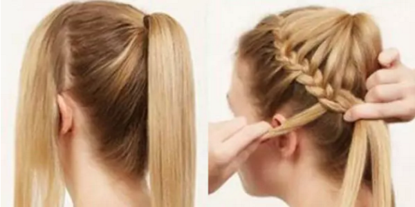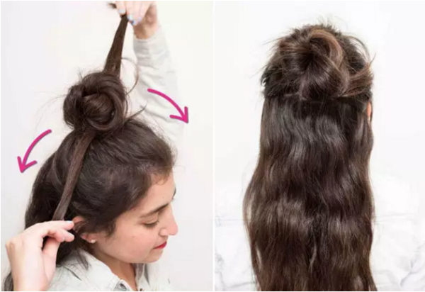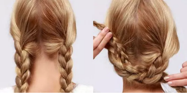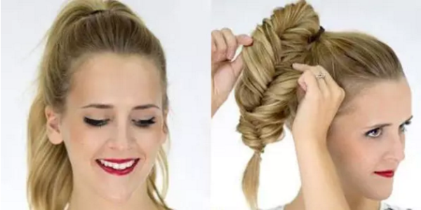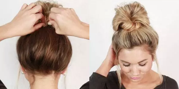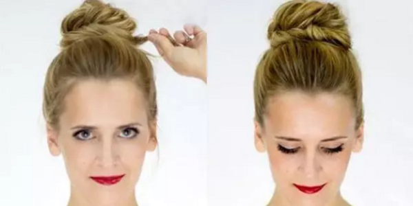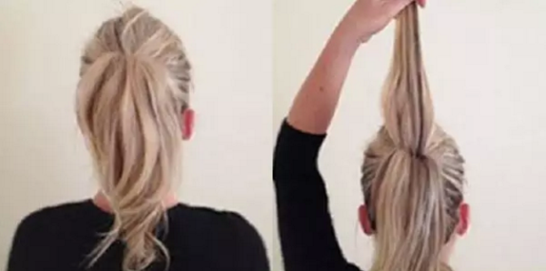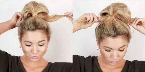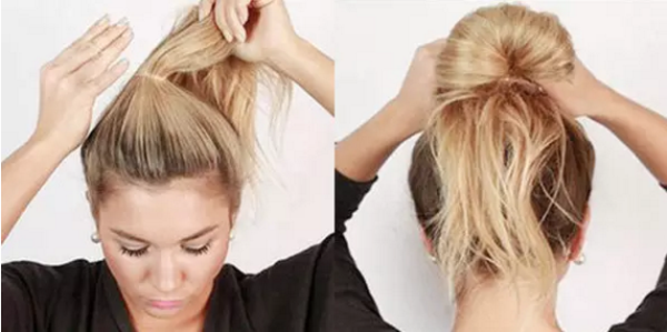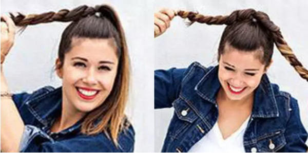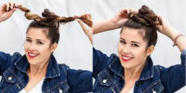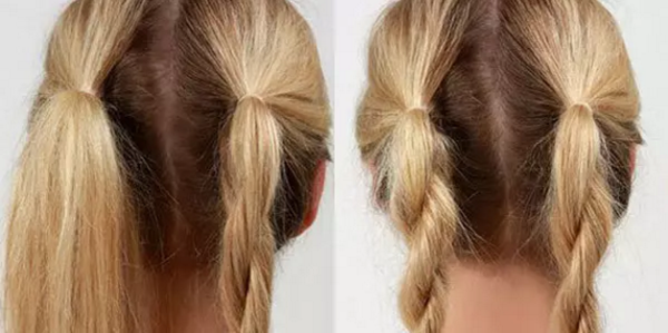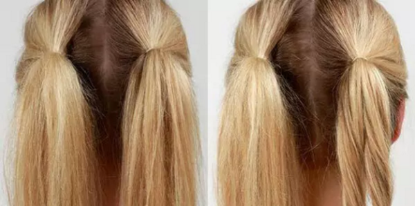 頭頂紮一個高馬尾,再把馬尾分成兩束
