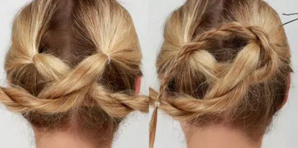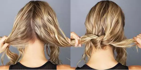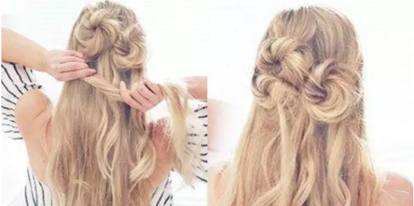 用預留的髮束在已經打好的兩個髮結下方再打個結