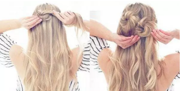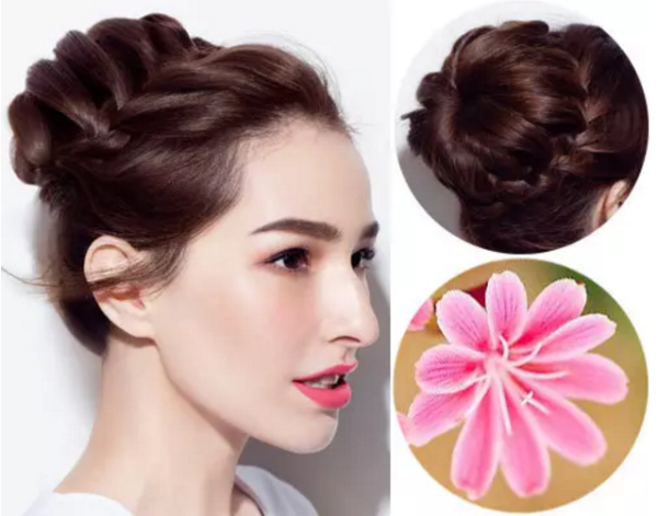 用小夾子將剩餘的髮尾藏進花瓣下方即可