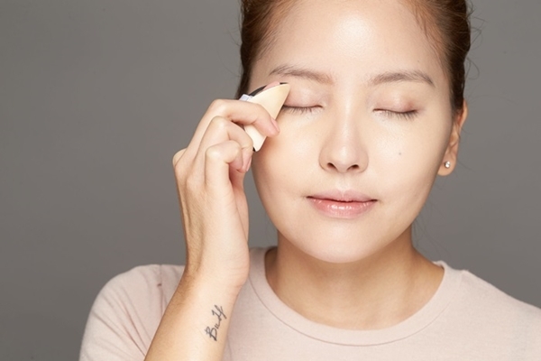 很容易忽略的部分,像是眼皮、眼下、鼻翼等處,最後可以再利用海綿上的餘粉,稍微輕輕地按壓這些地方,讓粉底能夠完全服貼才不會產生卡粉的現象。
