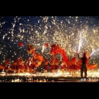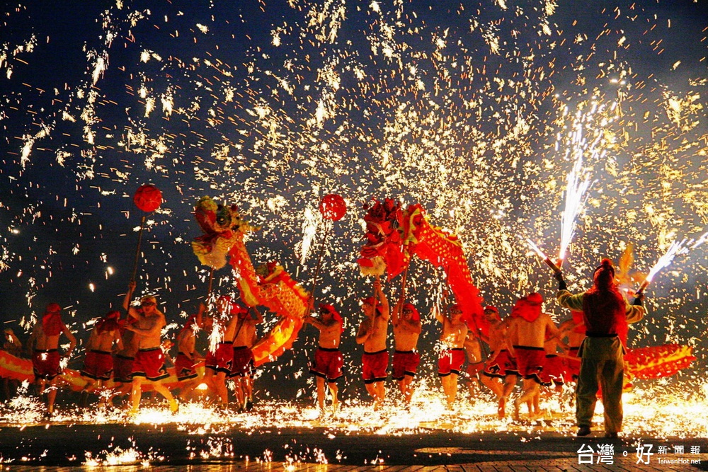 來自大陸重慶的的「銅梁火龍」是自明朝開始推出的民俗技藝,約有600年歷史,擁有「天下第一火龍」的美譽,利用燒熔鐵爐中的生鐵熔化成鐵水,往空中打出熾熱的火花,煙與火的交織,龍在花火與煙霧中飛舞,愈舞愈烈猶如一條狂野的火龍,是一場震撼視覺、充滿奇幻感與爆發力的表演,火龍演出的道具悉數由大陸運至台灣,來自四川的演出成員約四十多人,一場原汁原味的「銅梁火龍」就在南投燈會元宵期間上演。