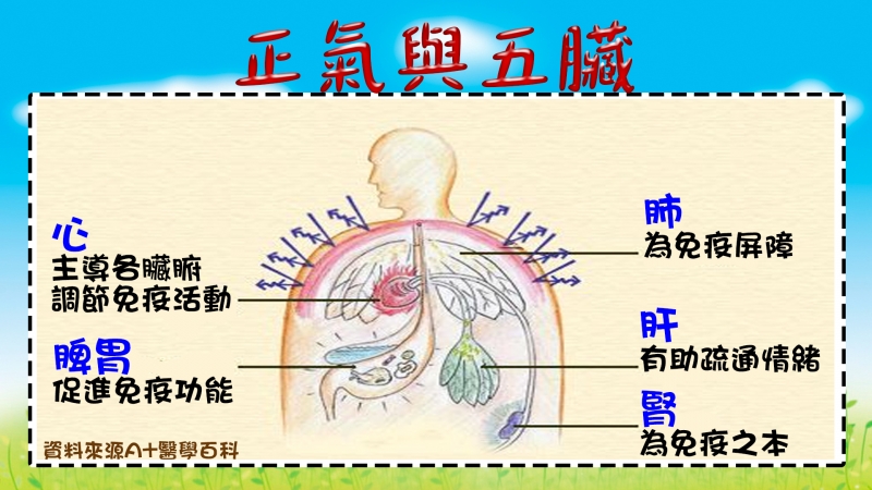 吳明珠中醫師表示,以中醫觀點來看,中醫學將人體的整體抗病和修復能力統稱為“正氣”,與五臟功能關係密切。