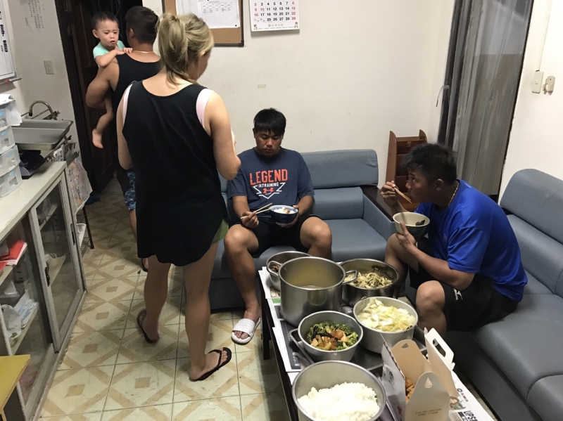 Nash:訪問時正好遇到你們下班聚在一起用餐,看的出公司提供的伙食很好!我們請躲在鏡頭外偷吃、難怪能在眾所矚目的第一季爆米花夏季聯賽惦惦吃三碗公、拿下具有歷史紀念價值的首場完封勝的黃健隆以及在該賽事中攻守兩端都有優異表現而入選中華隊的楊先賢來說說自己的感想吧!