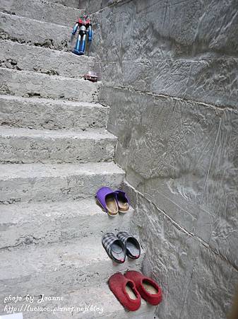 店旁邊的樓梯擺放一些玩具