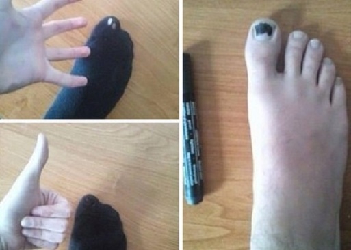 襪子破了怎麼辦?快用奇異筆把腳指頭塗黑!