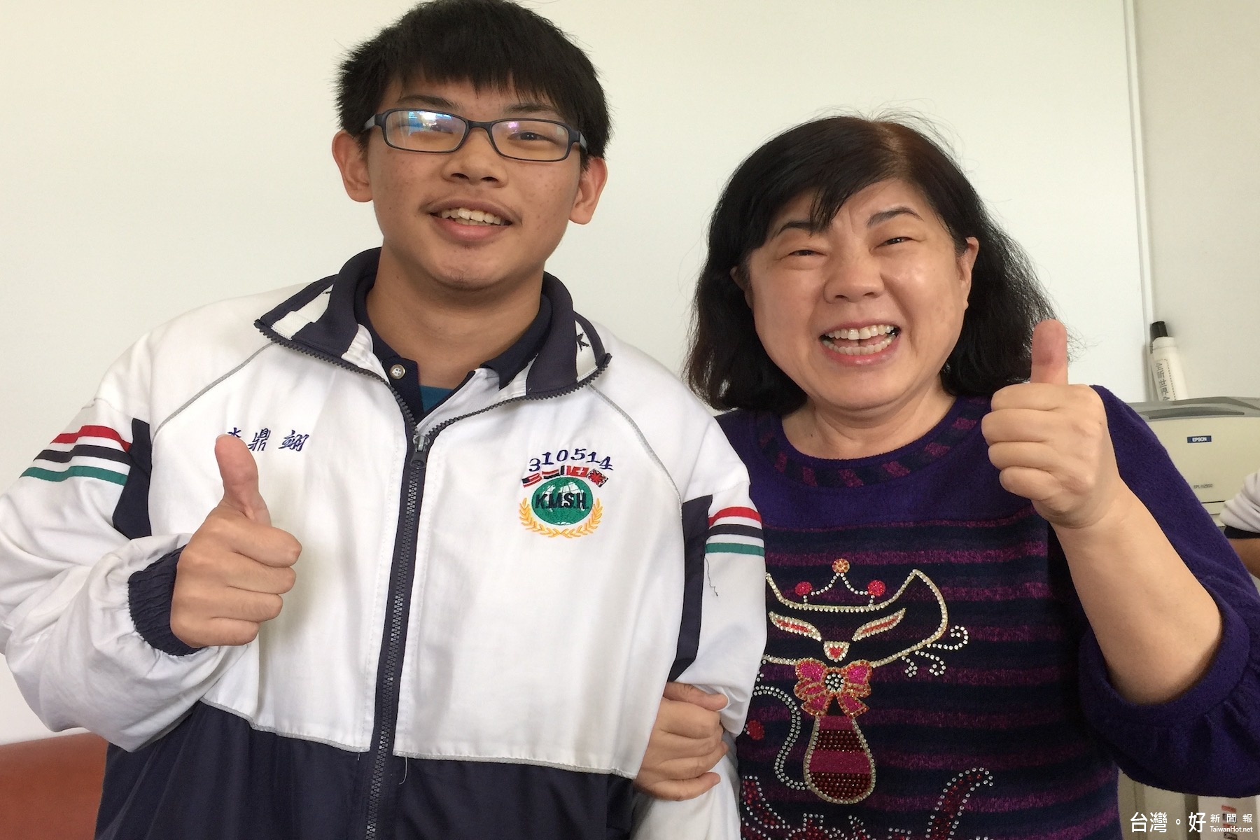 讀港明仁班的李鼎翊說,國小四年級曾學過學心算,港明國中部最喜歡上李淑媛老師的數學課,老師總是用愛和啟發式上數學課,拿下全國數學100分的滿分,最要感謝的是阿嬤李老師。媒體問,想當面向李淑媛老師說謝謝圓夢嗎,鼎翊當下說好!孩子王的校長劉麟麟就叩李老師。