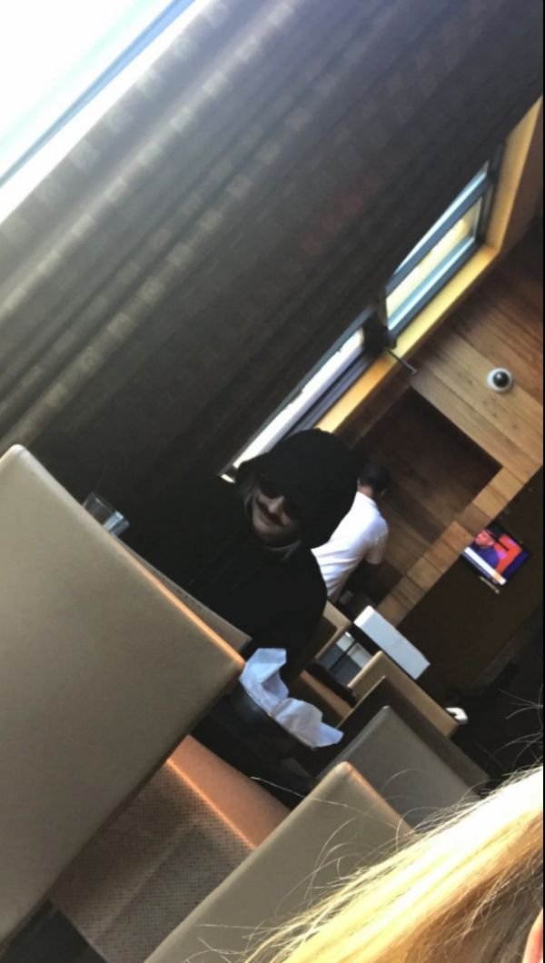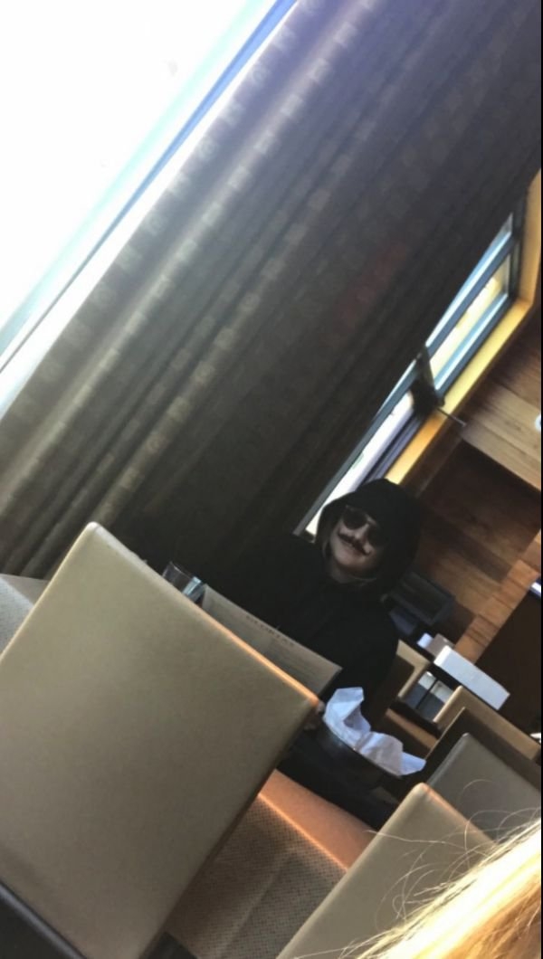她一轉頭就看到一個猥瑣(?)的鬍子男在看她,原來這是她朋友喬裝的www