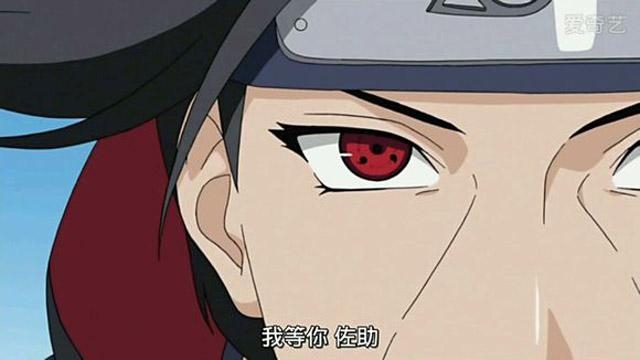 是在清冷的月光中。最後一次回望慢慢倒下的佐助和故鄉,他重新戴上割捨不下的護額。無盡的牽掛和不捨,從今以後與最珍惜的人為敵的痛楚,終於在你紅色的眼眸中凝成一顆流星,悄悄滑落在記憶深處。