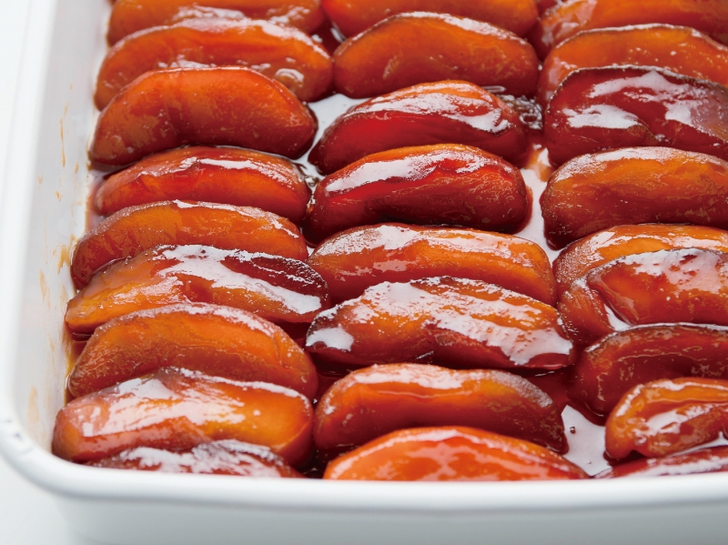 五、中途將火轉小,蘋果變軟後就翻面, 慢慢燉煮。偶爾翻個面,使焦糖均勻地滲入蘋果中。另外剩下一半分量的蘋果,也用相同方式來燉煮。