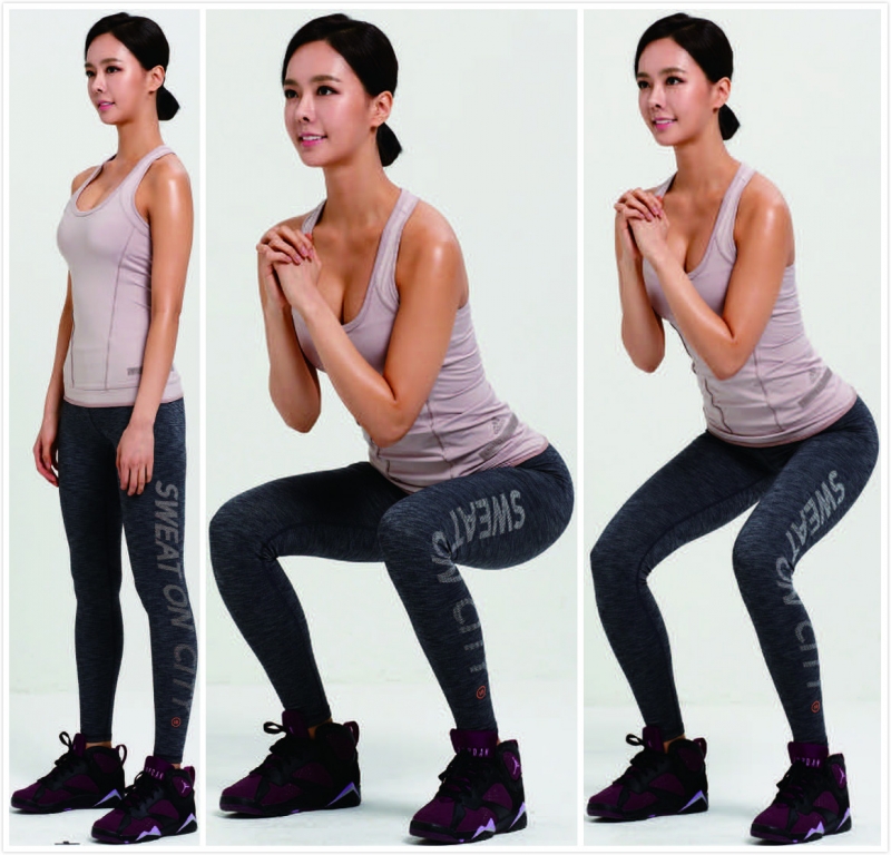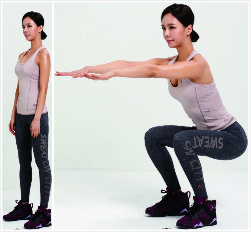 所有運動中效率最高的就是「深蹲」!因為可以確實運動到大腿、小腿、腰部、背部和腹部的肌肉,消耗的卡路里也非常多。如果今天做 10 次,明天就做 11 次,一天增加 1次,就是很有效的訓練方式。這個動作要做3 回,1 回 15 ∼ 20 次。