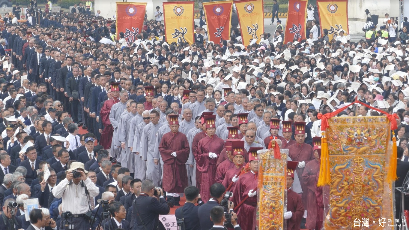 總統抵達會場後,先行國家祭祀禮及初獻禮,並獻香、獻帛、獻爵,為台灣祈福;總統強調,一貫道的精神提醒我們「世界要清平,人間要至善」,大家應時時保持良善的心,共同努力,讓國家社會變得更好。這場祈福活動秉持「挽世界為清平,化人心為良善,冀世界為大同」的宗旨為台灣祈福,令她深受感動。