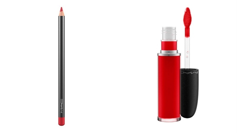 MAC,Lip Pencil,#Cherry。 MAC,Retro Matte Liquid Lipcolour,#Feel So Grand。
