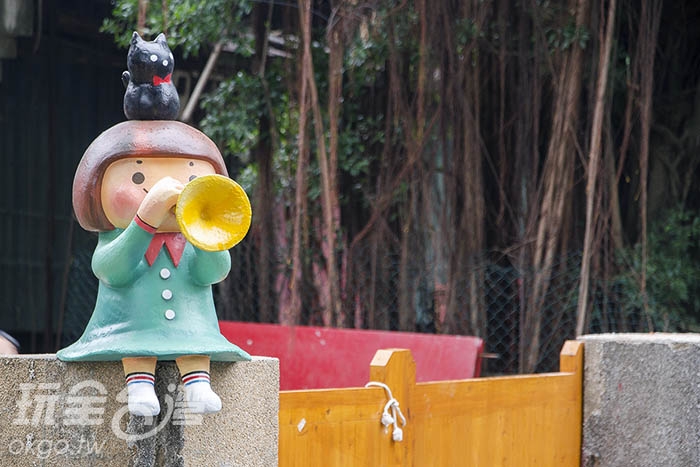 圖說:門柱上頭還坐著可愛的小公仔/玩全台灣旅遊網特約記者陳健安攝