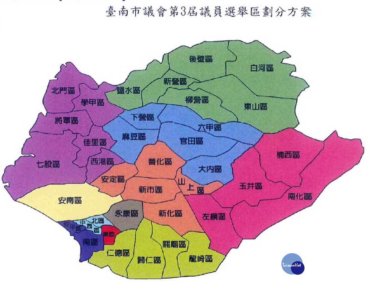 至於選區劃分則為,北區與中西區合併,安平與南區合併,白河與新營選區合併,學甲與佳里選區合併,善化、新化及新市區合併,南關線、玉井選區及平地、原地原住民選區則維持不變。