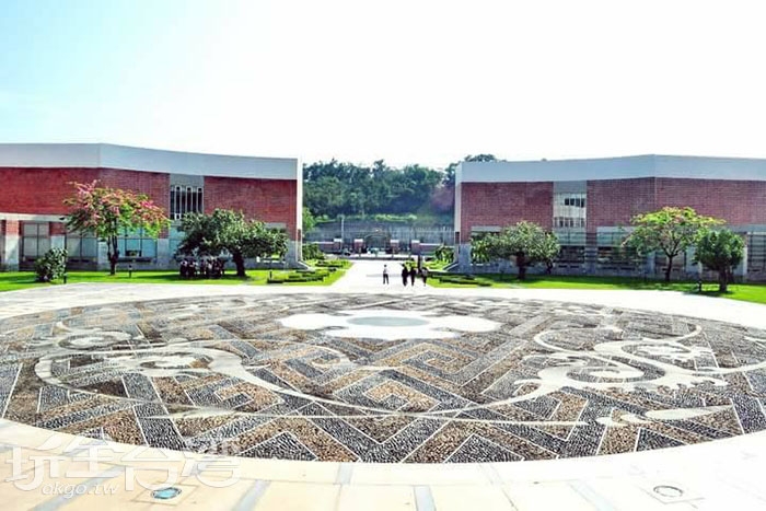 圖說:這是位於南藝大圖書館前的銅鏡廣場,廣場上的圖案是仿自漢代的四鳳紋銅鏡圖案。/玩全台灣旅遊網特約記者smallting攝
