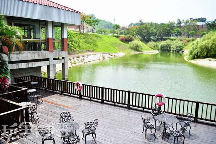 圖說:在湖畔棧臺的鑄鐵椅上喝杯熱咖啡,這樣的校園生活真是愜意。/玩全台灣旅遊網特約記者smallting攝
