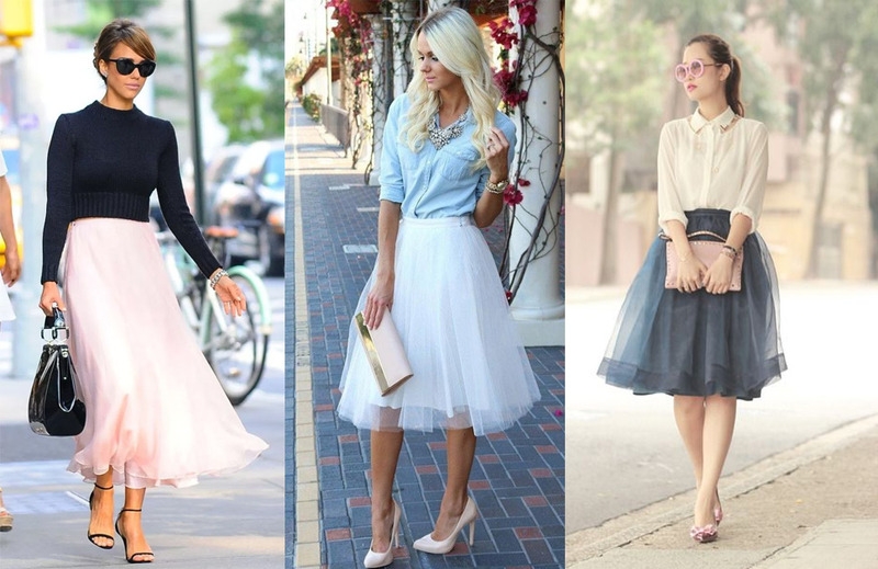 想到紗裙,第一個就是想到氣質唯美風!寬鬆的紗裙搭配剪裁合身的上衣,才能保持身材曲線,搭配簡約的素色上衣、黑色毛衣或雪紡紗,再搭上跟鞋就是經典淑女穿搭,若想加入一點休閒風,穿上單寧或條紋上衣就可以營造不一樣的感覺。