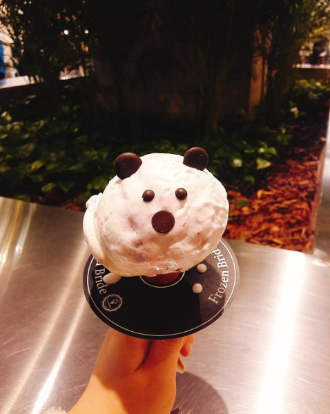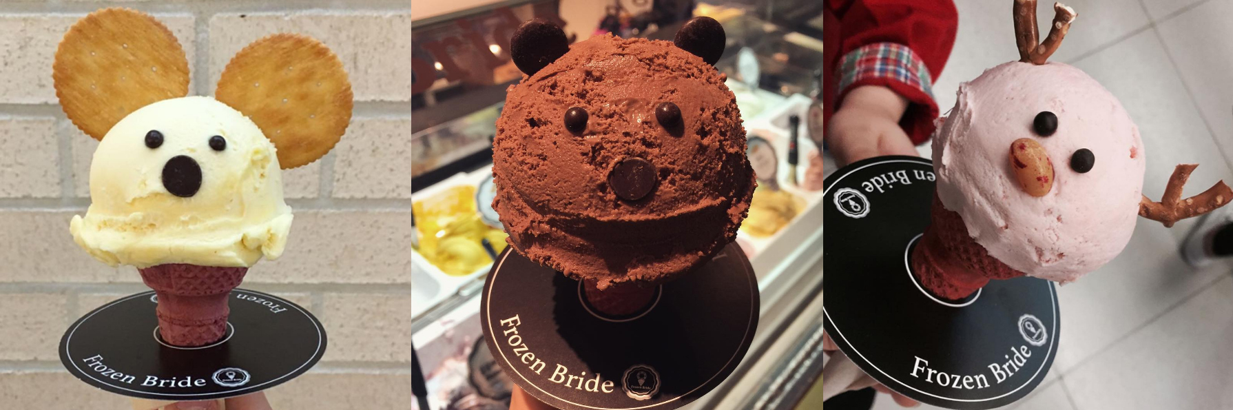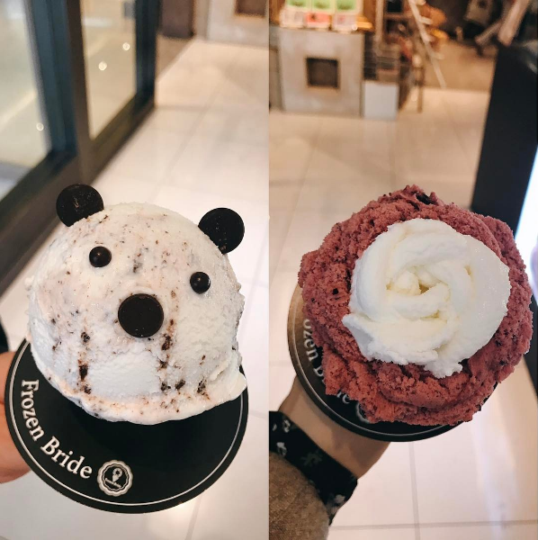 來自泰國的義式冰淇淋品牌FrozenBride,是泰國第一家花朵形狀的冰淇淋(起源當然也是來自義大利),在韓國有超多家分店,明洞樂天百貨,釜山、仁川和議市政府的新世界百貨都可以看到它的蹤跡。雖然他們的玫瑰花瓣冰淇淋在曼谷人氣頗高,FrozenBride另一款動物造型的冰淇淋反而在韓國被發揚光大,比起創始的玫瑰更受歡迎,可愛的模樣讓韓妞拍到融化了都還捨不得吃。