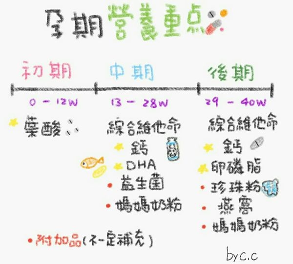 為大家統整孕期保健食品每個孕期須補充的要素,讓孕媽咪們一目了然!