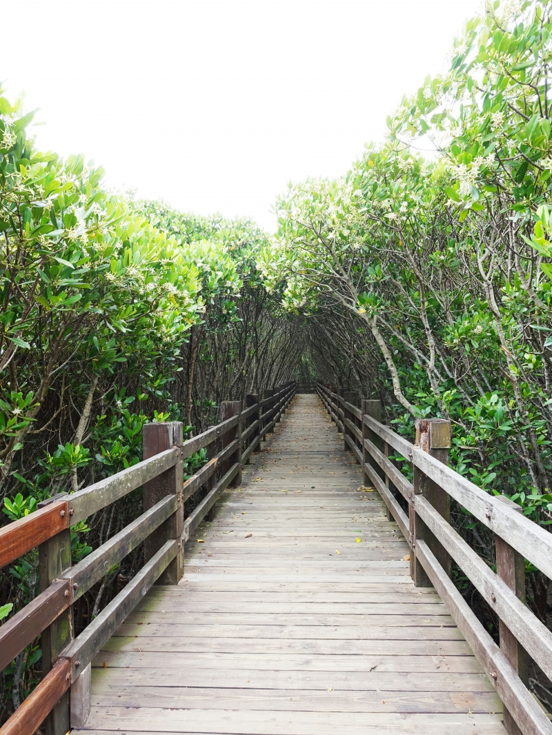 紅毛港紅樹林生態遊憩區位在新豐鄉靠近出海口附近,是北台灣唯一水筆仔、海茄苳混生的紅樹林,也是台灣唯一搭建觀賞步道的生態保護區,比起台北關渡的紅樹林,這裡可以站得更近,看得更清楚,把頭向下探,隨便就能找到一堆招潮蟹,平均每二秒鐘就有一隻眼前經過,再更仔細的瞧,連彈塗魚都映入眼簾了。