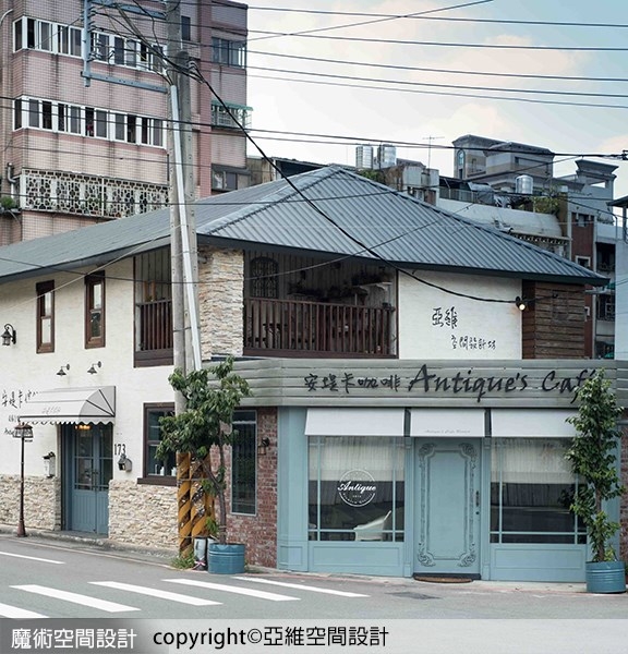 【圖說】▲位於桃園市德華街173號1樓的亞維空間設計X安堤卡家居,以復古磚、蒂芬妮藍、造型雨棚等元素,重塑迷人的歐洲街角小屋風情。