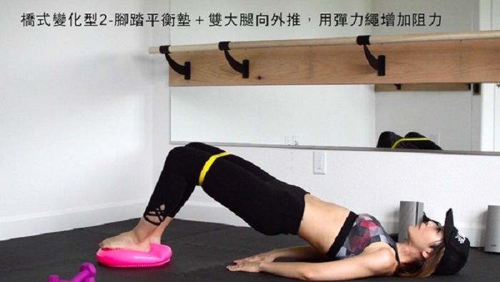 Paige特別設計一套橋式的衍生動作,共有六個動作,可以訓練到下半身、甚至上半身的肌肉群。