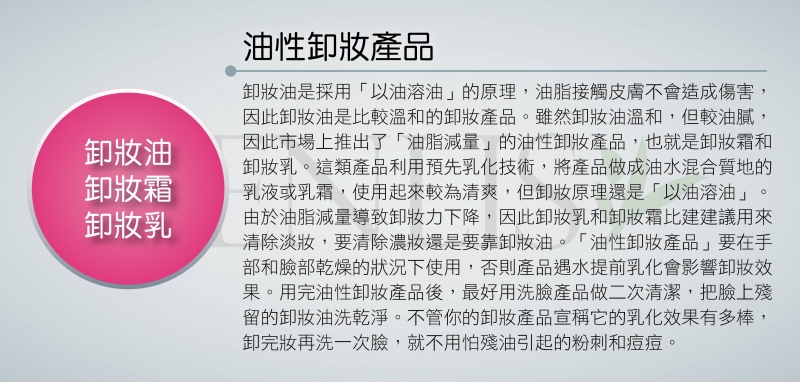 從卸妝的根本原理切入,分析各種卸妝產品的本質,