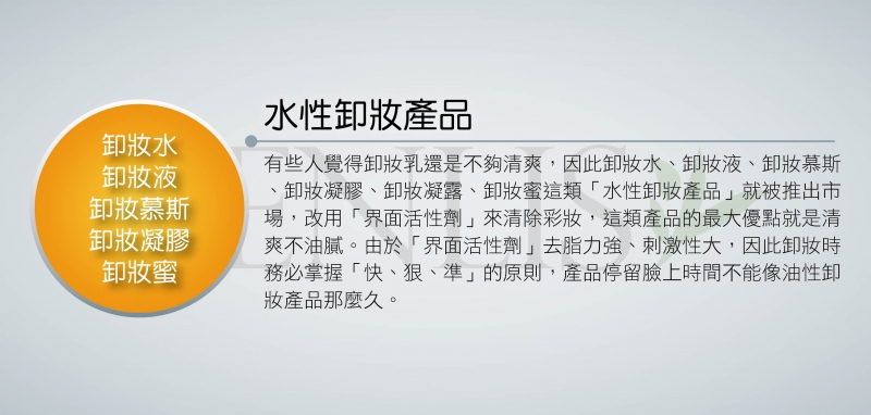 「界面活性劑去油」的卸妝產品叫做「水性卸妝產品」,
