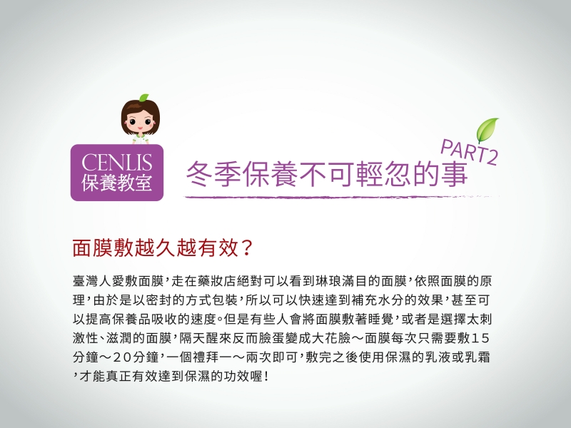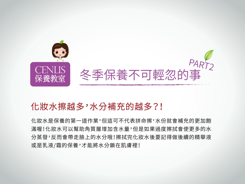 對於冬天保養不可輕忽的小細節,上一篇曾經提到過,冬季的保養基礎是保濕,但是詩小編發現有些女孩的臉不管怎麼塗塗抹抹,就是無法改善脫屑發癢的狀況,原來是在保濕的第一關就忽略了一些細節,這下子基本的保濕沒做好,反而臉部脫屑的狀況還越來越嚴重。這個禮拜的主題,就在過年前夕,詩小編要來告訴大家冬季不可忽略的保養小秘笈,大家不彷可以趁年節春假在家好好為自己檢視肌膚狀況以及保養品大檢查~